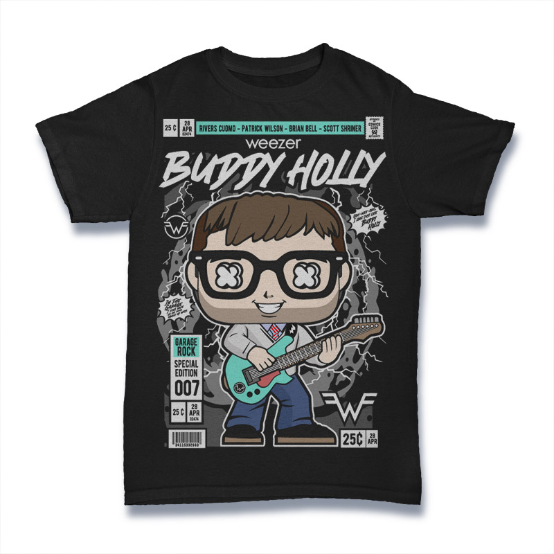 Παιδικό Κοντομάνικη T-shirt unisex με στάμπα από Weezer – Buddy Holly “In The Garage I Feel Safe” Comic/Pop Art Παιδικό T-Shirt σε μαύρο χρώμα για casual εμφανίσεις.